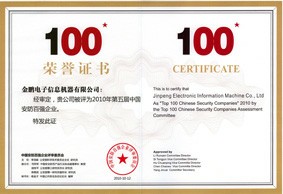 2010年10月12日下午,“2010第五届中国安防百强论坛和颁奖典礼”在深圳深航国际酒店隆重举行。金鹏电子信息机器有限公司喜获“2010年第五届中国安防百强企业”称号。公安部科学技术委员会主任李润森、中国安全防范产品行业协会副理事长司同军、公安部第三研究所所长胡传平、公安部第一研究所副所长陈朝武等领导、专家及国内外安防企业代表参加了会议。