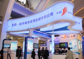 金鹏在数字化城市管理领域拥有技术领先、符合标准的优秀软件产品,并在广州、佛山、深圳、济南、淄博、西安、武汉等地拥有成功案例。金鹏数字城市解决方案不仅仅局限于城市部件管理、城管执法,而是拓展到覆盖整个城市管理的监督、指挥、监控、交管等多个方面。本次数字城市大会金鹏的展台也是按照这几个方面模拟了城市监管中心、指挥中心、监控中心、交管中心进行统一规划,向用户展现金鹏对数字化城市管理深刻理解的同时,也让用户可亲身体验金鹏数字化城市的相关产品及服务。