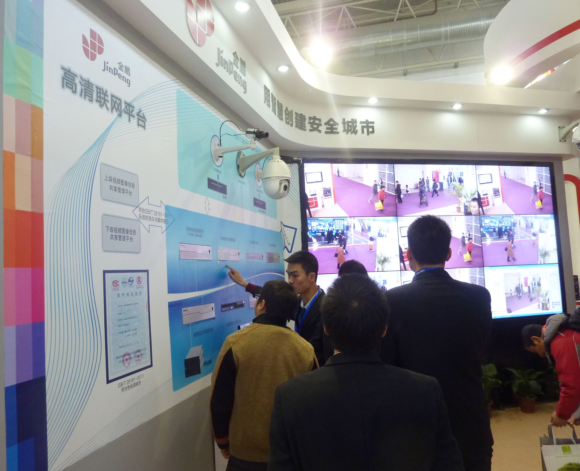 安防行业的盛会2012年中国国际社会公共产品博览会于12月3日至6日在北京中国国际展览中心(新馆)盛大举行,国内众多知名厂商、集成商、服务提供商等企业纷纷云集北京,争奇斗艳。金鹏始终坚持以专业的态度为客户提供智慧的安全、健康服务。围绕着“安全”和“健康”的主题,此次安博会金鹏展区主要展示: