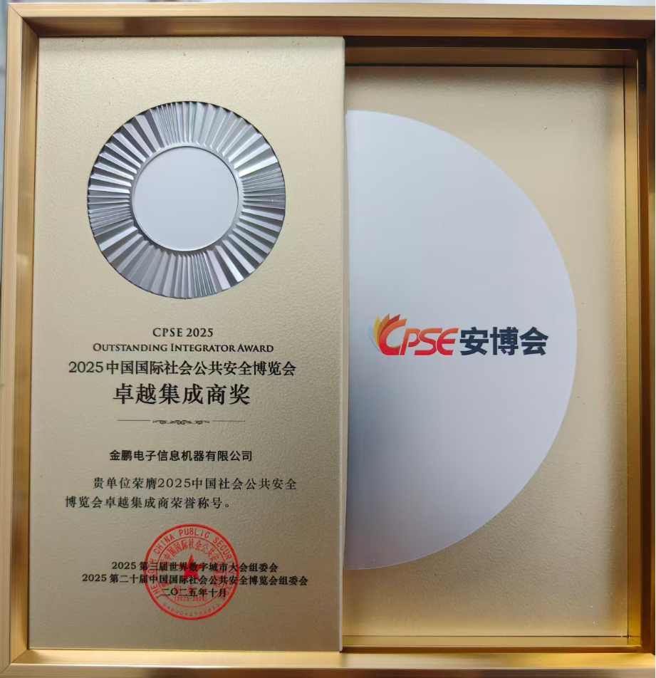 为深入贯彻党和国家“建设更高水平平安中国”的战略部署,积极推动AI大模型、大数据、物联网等新一代信息技术在安防领域的深度融合与创新应用,助力产业链优化升级与数字化转型,中国国际社会公共安全博览会组委会携手安徽、福建、浙江、新疆、内蒙古、甘肃、贵州、云南、山西、湖北、黑龙江、辽宁、天津、济南、成都、西安、武汉、南昌、苏州、厦门、青岛、南通、东莞等全国二十余个省市的安防行业组织,共同聚焦新安全格局下的技术变革与生态协同,联合发起2025第二十届中国国际社会公共安全博览会——“卓越集成商奖”评选。作为中国安防协会副会长单位,金鹏电子信息机器有限公司凭借在安防和数字城市领域突出的技术创新实力和市场拓展能力以及对行业的贡献,荣获2025中国国际社会公共安全博览会卓越集成商奖殊荣。