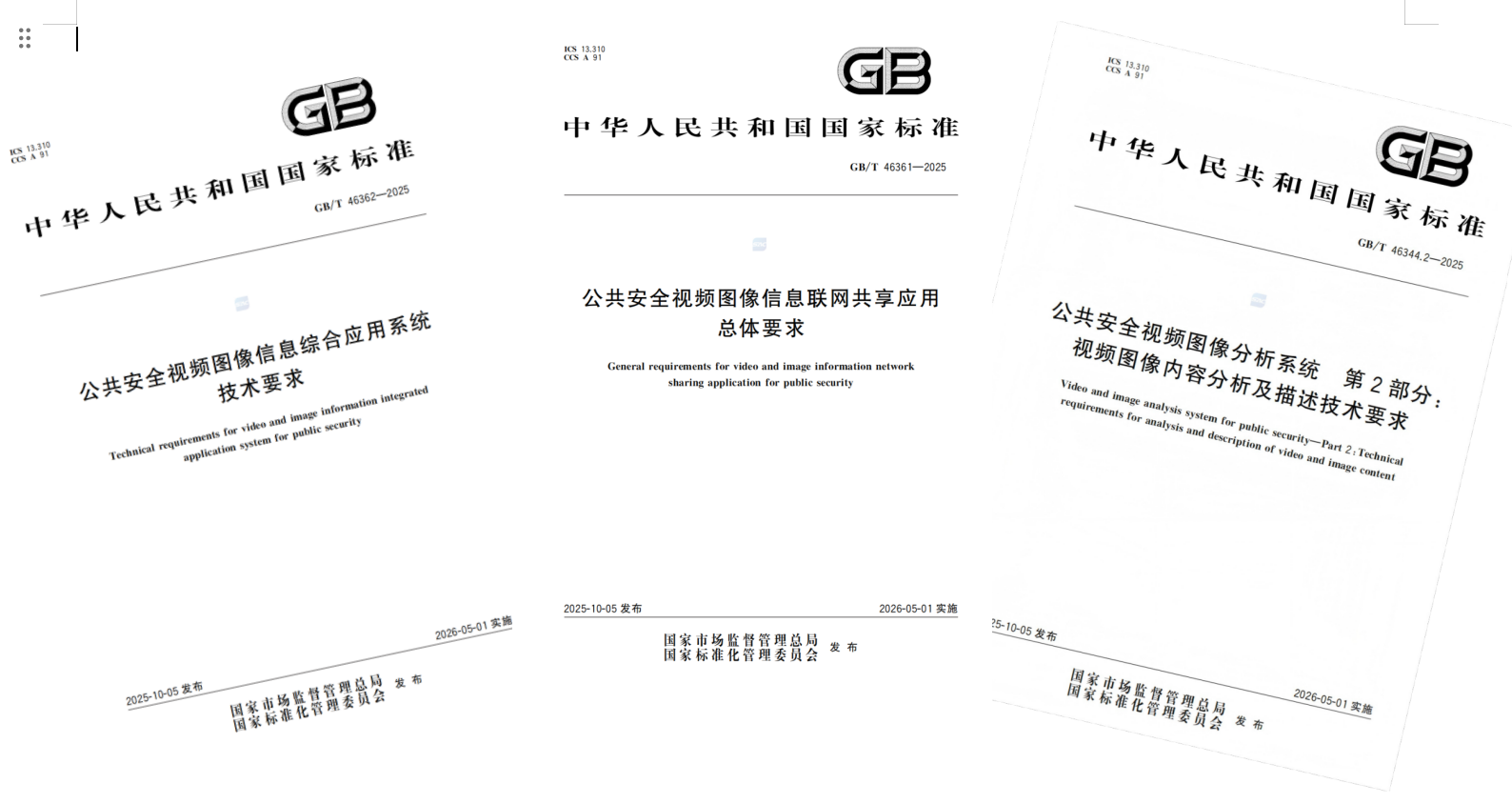 近期,国家市场监督管理总局(国家标准化管理委员会)发布2025年第24号标准发布公告,批准15项公共安全视频图像国家标准正式发布。这些标准由公安部主管,全国安全防范报警系统标准化技术委员会(SAC/TC100)归口,并将于2026年5月1日正式施行。其中,金鹏电子信息机器有限公司作为国家标准参编单位参与编制的三项国标,即GB/T46361 - 2025《公共安全视频图像信息联网共享应用总体要求》、GB/T46362 - 2025《公共安全视频图像信息综合应用系技术要求》、GB/T46344 - 2025《公共安全视频图像分析系统第2部分:视频图像内容分析及描述技术要求》,均在获批之列。